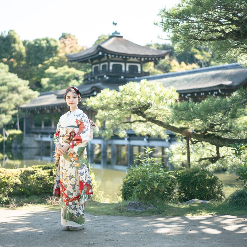 特別感を味わっていただける広々とした境内、そして美しい庭園で知られる神苑、このような伝統的な空間での振袖の前撮りは、平安神宮の荘厳な雰囲気とよくマッチし、写真映えするはずです。