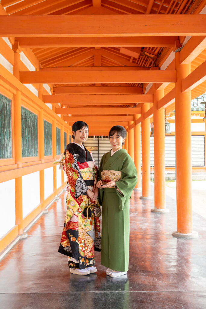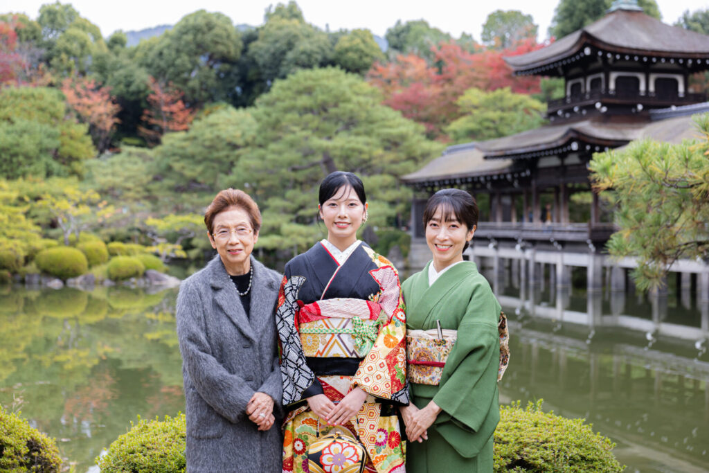 ご自前のお振袖での撮影をご希望され、せっかく平安神宮で撮影するならと、お母様もお着物をお召しになっての撮影でご決定。