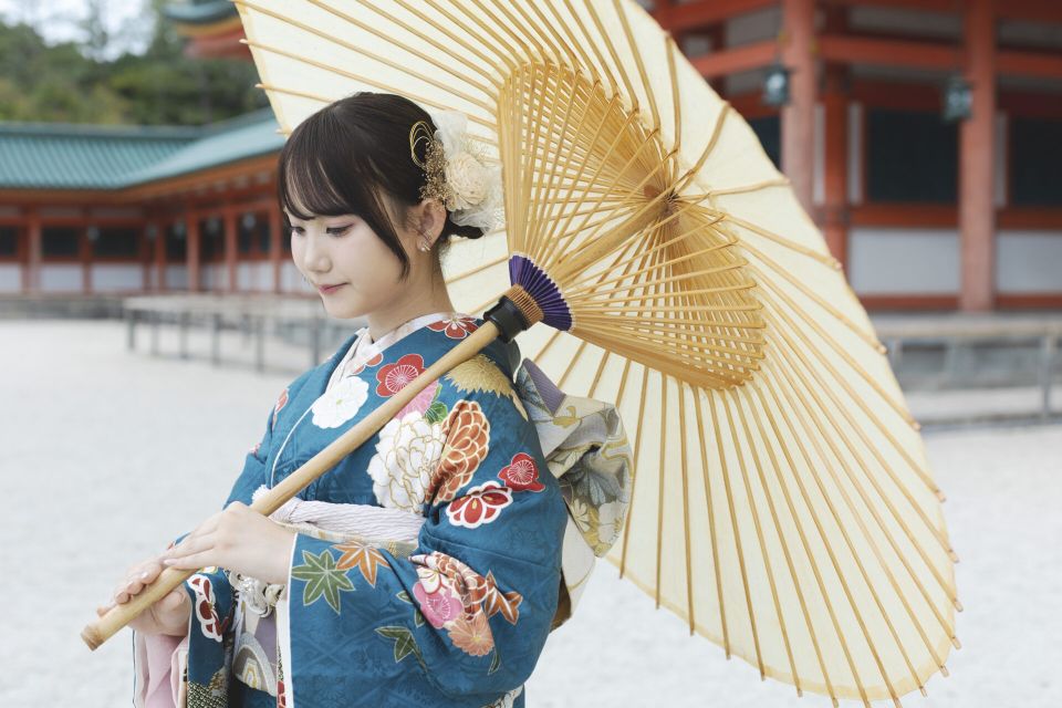 平安神宮は京都の美しい神社で、特に紅葉の季節には絶景が広がります。成人式の前撮りを行うには、紅葉の季節に訪れると、色とりどりの葉が背景として素晴らしい写真を撮ることができます。