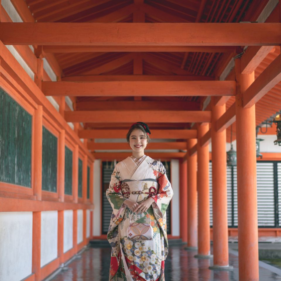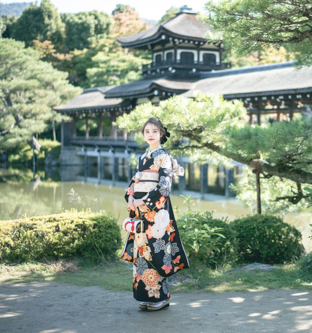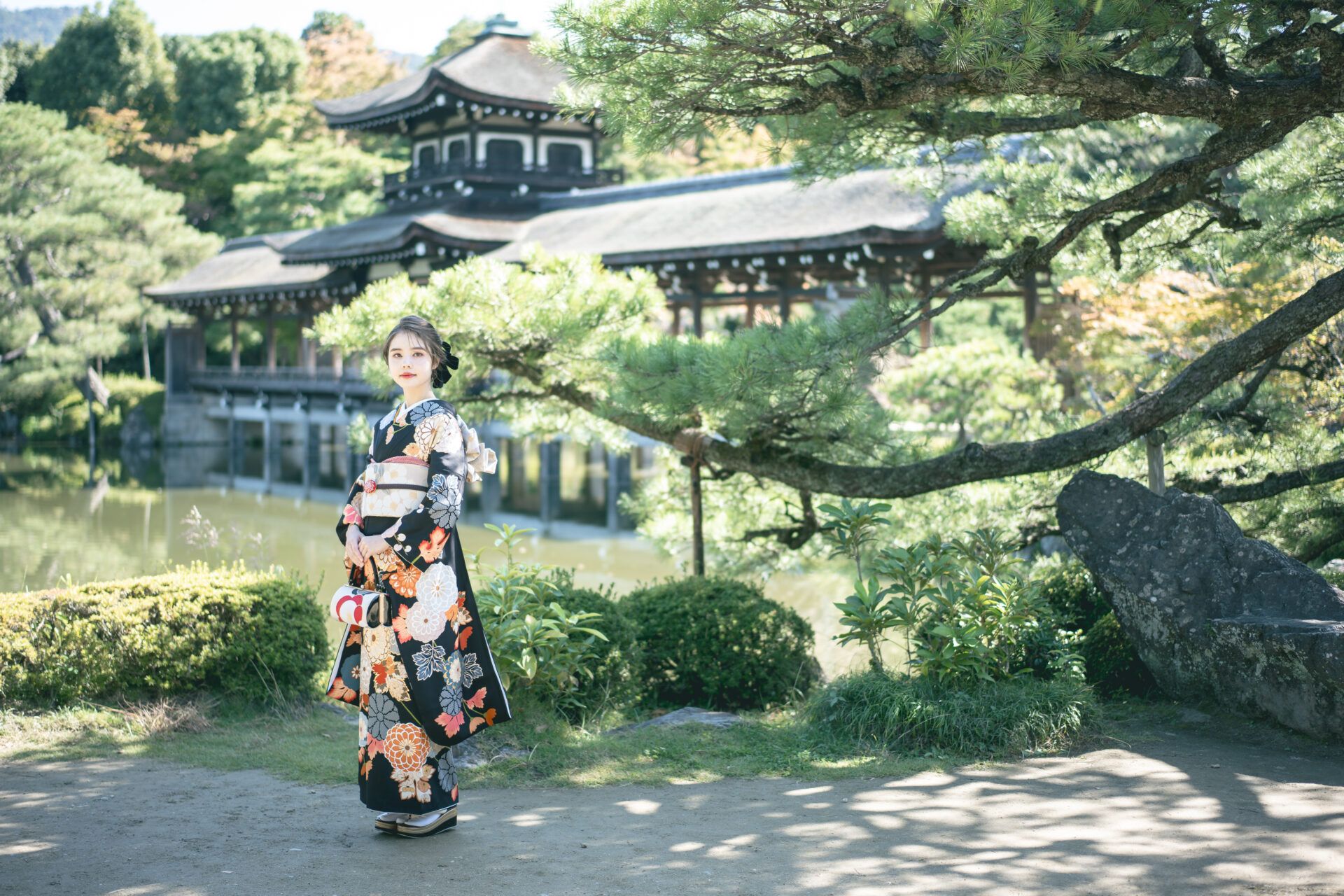 特別感を味わっていただける広々とした境内、そして美しい庭園で知られる神苑、このような伝統的な空間での振袖の前撮りは、平安神宮の荘厳な雰囲気とよくマッチし、写真映えするはずです。