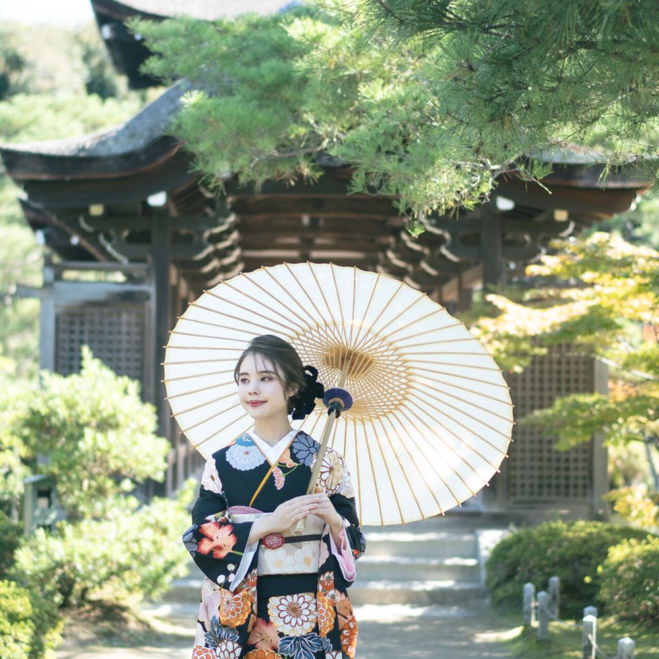 平安神宮の神苑で撮影の予約ができるのは、keyaki振袖フォトスタジオだけ。